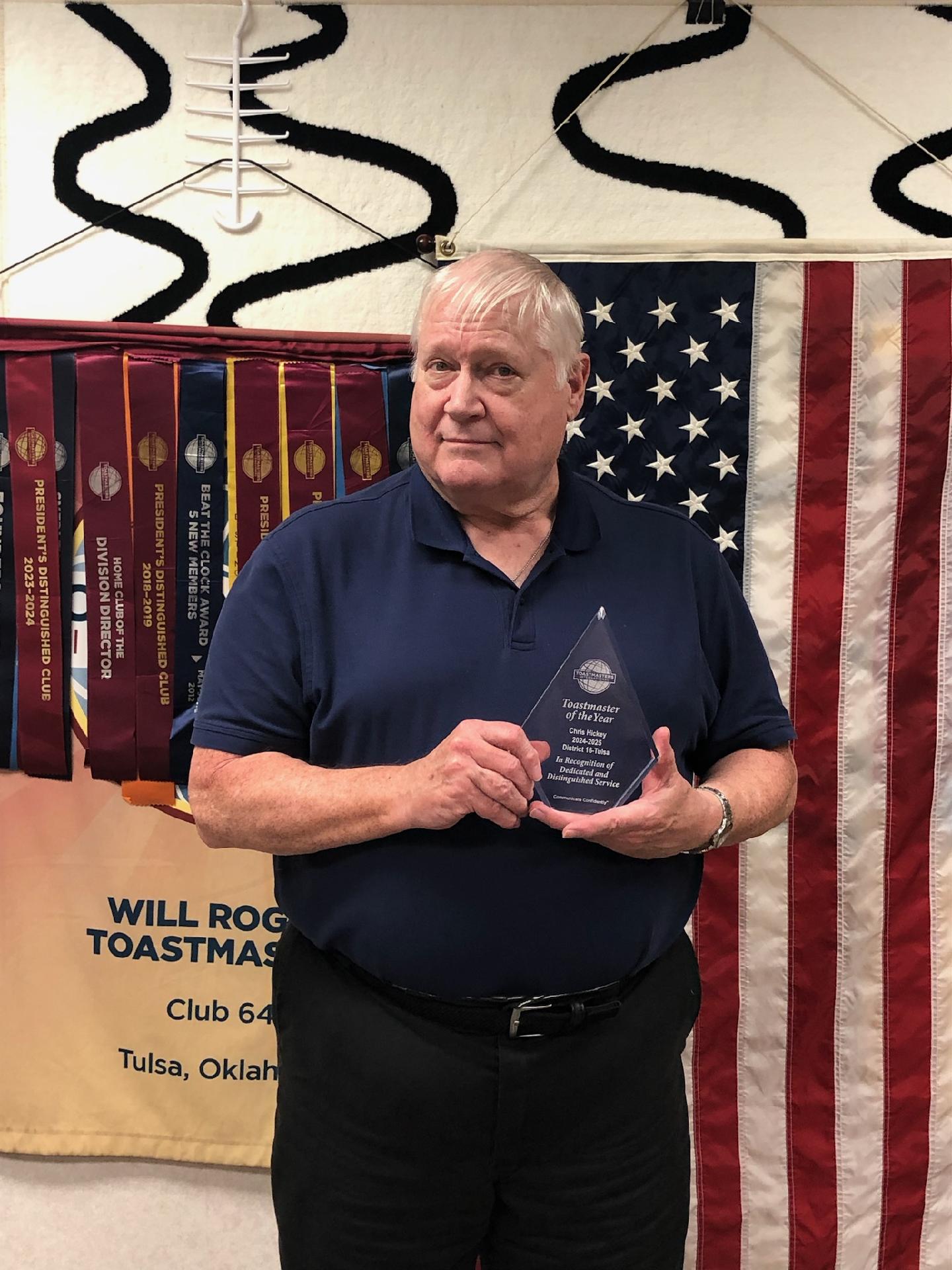 The Will Rogers Club is proud to announce that our own Chris Hickey as been awarded “Outstanding Toastmaster of the Year” for District 16 for the 2024-2025 year. Chris is our Sergeant-at-Arms, Zoom Master, an outstanding speaker, a member of more than one club, and active in District activities. Congratulations to Chris!
